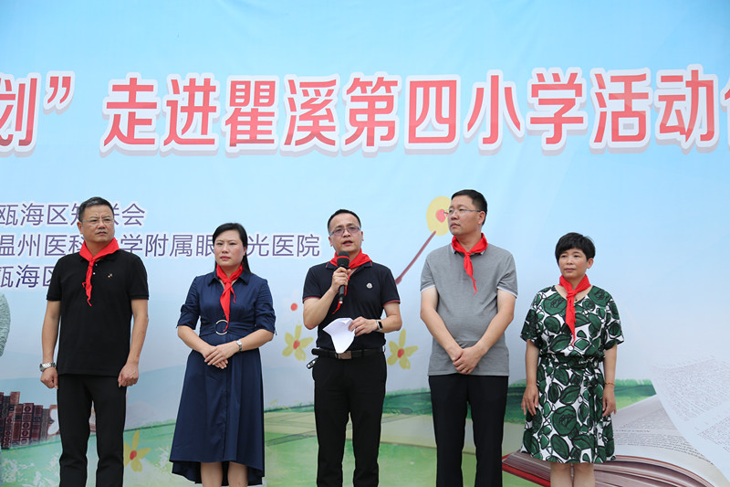 5月25日下午,“校園視覺(jué)關(guān)愛(ài)活動(dòng)” 聯(lián)合甌海知聯(lián)會(huì)“書香計(jì)劃”走進(jìn)瞿溪四小,為該校孩子贈(zèng)送書籍及公益眼鏡,甌海區(qū)副區(qū)長(zhǎng)、區(qū)知聯(lián)會(huì)會(huì)長(zhǎng)王曉康,區(qū)知聯(lián)會(huì)常務(wù)副會(huì)長(zhǎng)徐海曼等出席了活動(dòng)。 活動(dòng)上,我院防盲治盲辦公室涂昌森主任給孩子們講解了保護(hù)眼睛的知識(shí),提醒孩子們?cè)谂W(xué)習(xí)的過(guò)程中,也要時(shí)刻愛(ài)護(hù)自己的眼睛,定期復(fù)查,防治結(jié)合。