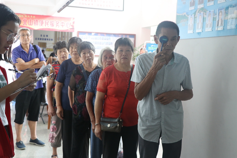 2018年8月27日上午,我院醫(yī)療隊工作人員,來到青田縣北山鎮(zhèn)開展下鄉(xiāng)義診活動,為當(dāng)?shù)亓羰乩先怂腿嘏?br/> 義診活動現(xiàn)場,前來就診的群眾早早的就在等待了,我院醫(yī)護(hù)人員為前來就診的村民除了測視力、測血壓、血糖以外,還進(jìn)行了全面的眼部健康檢查,并耐心細(xì)致地為村民講解眼健康科普知識,以及日常眼科的常見病、多發(fā)病的預(yù)防和常用眼科藥品等方面進(jìn)行指導(dǎo),受到當(dāng)?shù)乩先藷崃覛g迎。