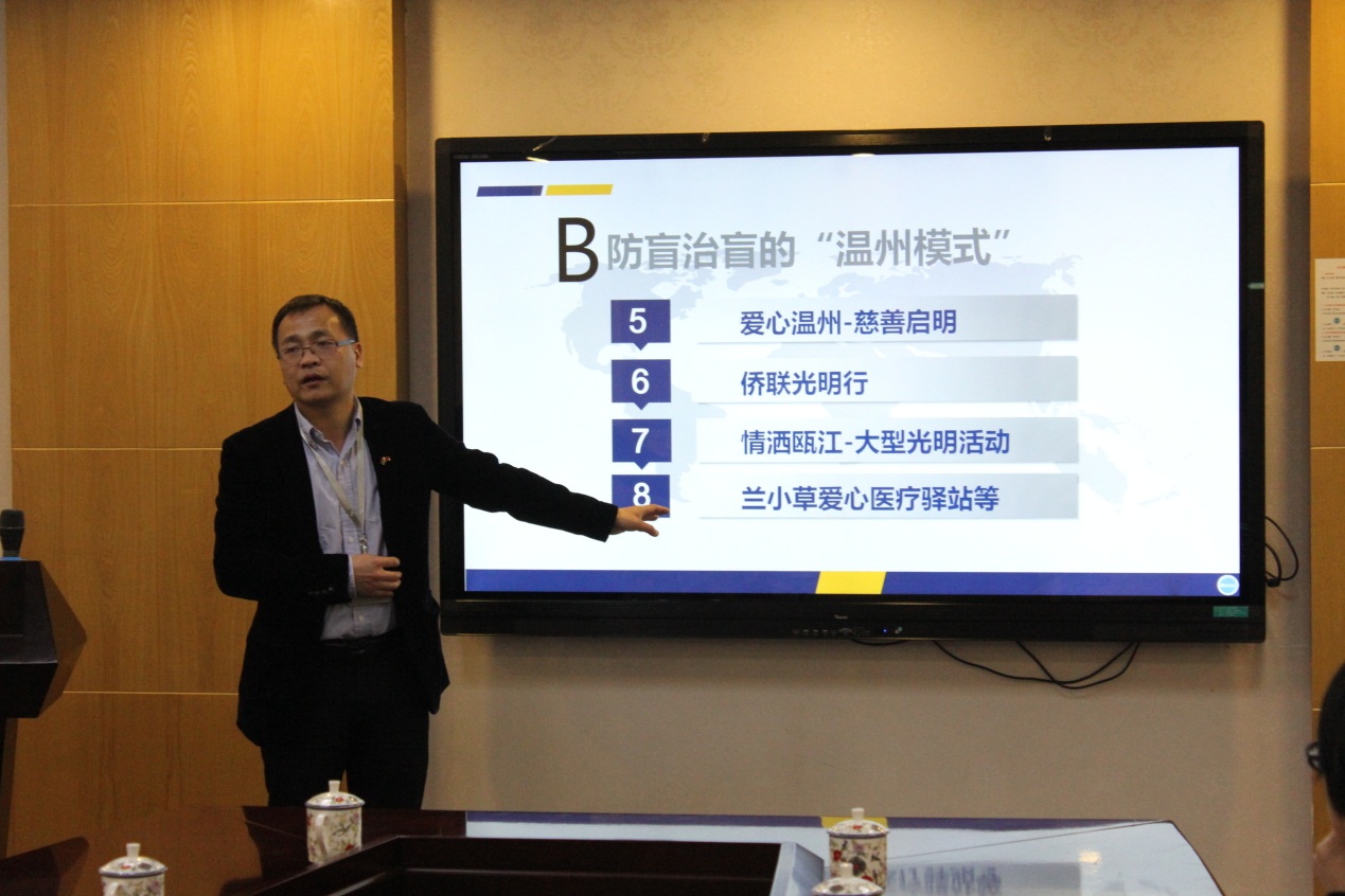 上午,周翔天副院長在醫(yī)院門口熱情迎接了客人們的到來。涂昌森主任詳細介紹了我院川藏青高原光明行活動等特色防盲公益項目及智慧醫(yī)院與分級診療的合作幫扶模式。徐良德教授介紹了我院青少年近視防控工作的具體情況。