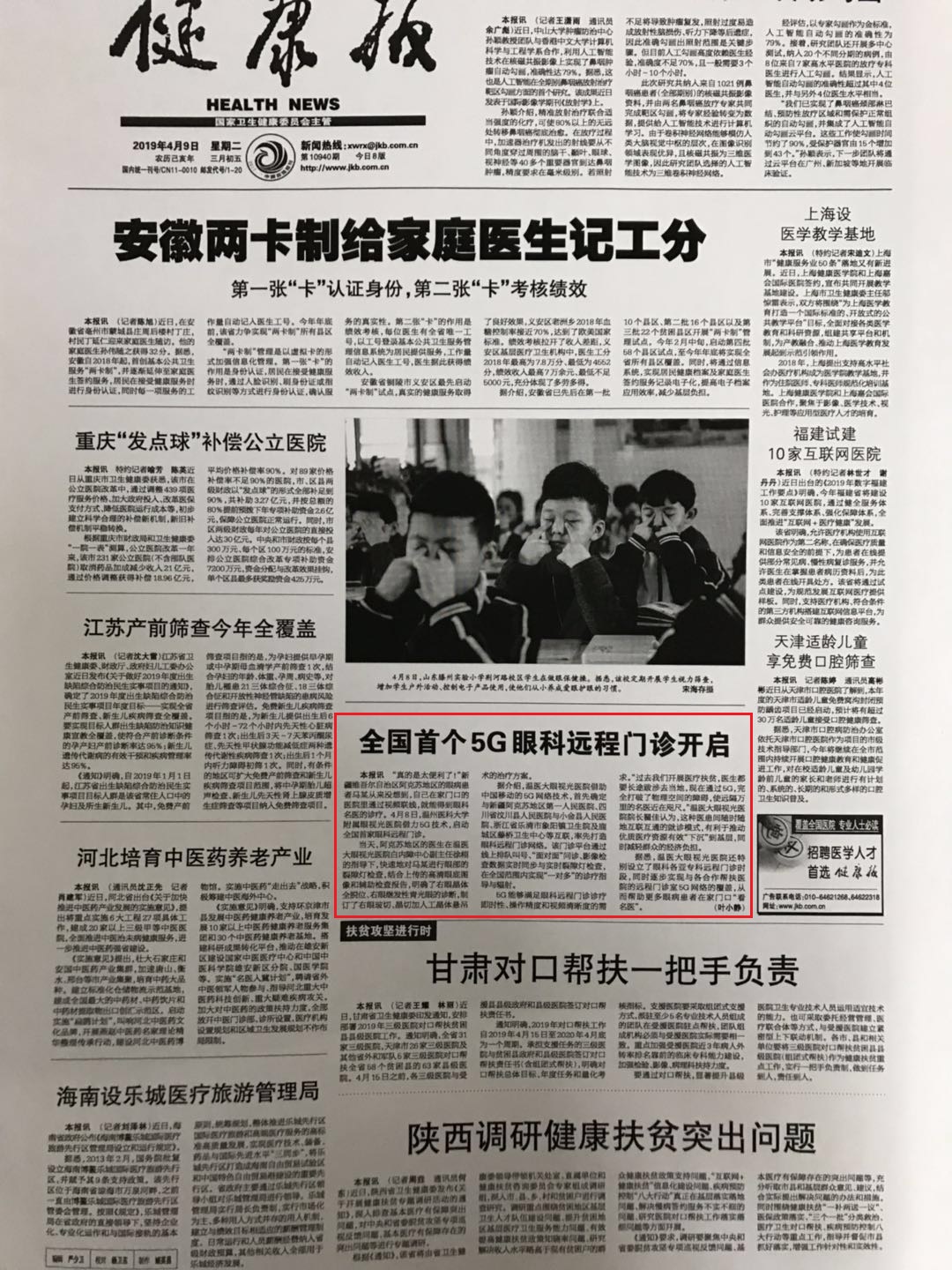 本報訊 “真的是太便利了!”新疆維吾爾自治區(qū)阿克蘇地區(qū)的眼病患者馬某從來沒想到,自己在家門口的醫(yī)院里通過視頻聯(lián)線,就能得到眼科名醫(yī)的診療。4 月8 日,溫州醫(yī)科大學附屬眼視光醫(yī)院借力5G 技術,啟動全國首家眼科遠程門診。