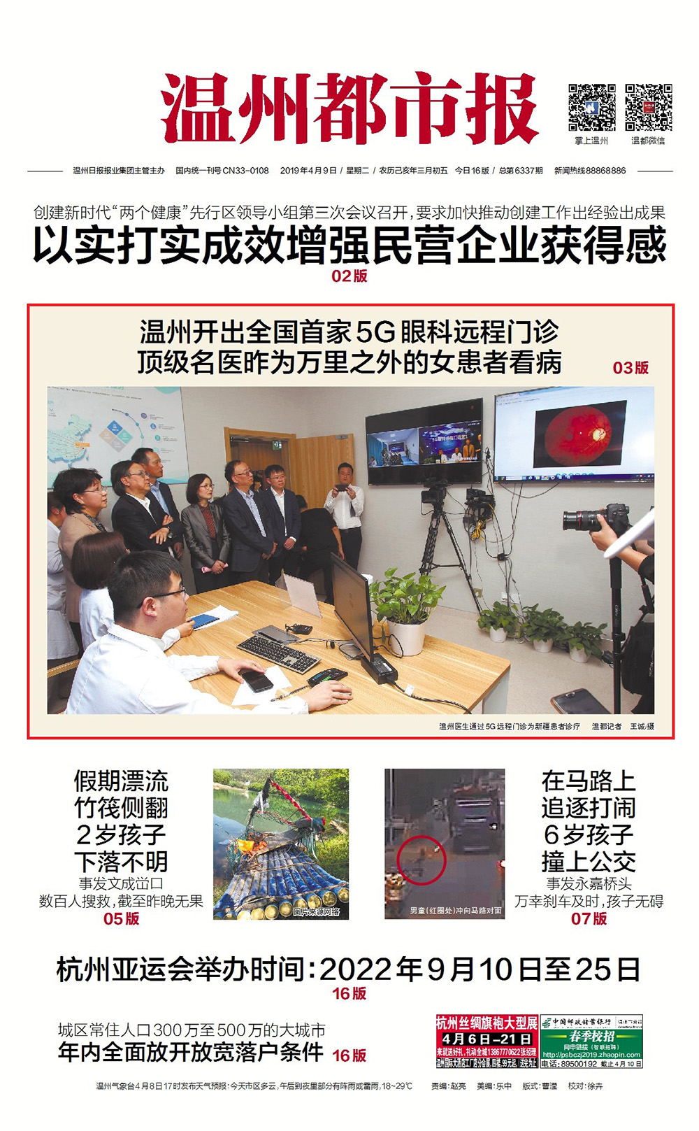 不到10分鐘,在溫州的醫(yī)生就給在新疆的患者診斷出眼疾,并給出手術(shù)方案。昨天下午,溫州醫(yī)科大學(xué)附屬眼視光醫(yī)院啟動全國首家眼科遠(yuǎn)程門診,使遠(yuǎn)隔萬里的醫(yī)生和患者實(shí)現(xiàn)“面對面”實(shí)時(shí)診療。據(jù)悉,這不僅是全國眼科首家基于5G網(wǎng)絡(luò)、可覆蓋全國運(yùn)行的遠(yuǎn)程門診,也是溫州醫(yī)療衛(wèi)生機(jī)構(gòu)中首次開展5G遠(yuǎn)程門診。今后,醫(yī)生可以用手機(jī)在5G系統(tǒng)平臺給全國各地的眼疾患者看病。