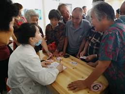 7月24日,澤雅北林垟鄉(xiāng)。天氣雖然炎熱,但是前來(lái)參加活動(dòng)的老人絡(luò)繹不絕。老人們?cè)邳h員志愿者的引導(dǎo)下有序的排隊(duì)。護(hù)士們認(rèn)真地為老人們測(cè)量血糖、血壓,并告知老人們測(cè)量的數(shù)據(jù),特意提醒老人們要注意。并在當(dāng)中解答疑問(wèn),向居民講解健康知識(shí),對(duì)增強(qiáng)疾病預(yù)防意識(shí),促進(jìn)身體健康,起到了積極作用。