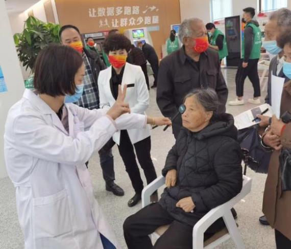 當天一早,我院“百名博士下基層”公益團隊來到龍港市鯨頭社區(qū),有條不絮地將社區(qū)大廳布置成簡易的醫(yī)療檢查室,安排好流程就開始為慕名而來的社區(qū)群眾檢查眼睛,經(jīng)過視力檢查、裂隙燈檢查、血糖血壓測量等檢查項目,現(xiàn)場累計為七十余位中老年人進行了眼健康檢查,對需要手術的患者后期開展復明手術,同時還為患有干眼、結膜炎的群眾發(fā)放相關眼科藥品和科普資料。