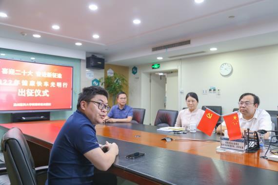 9月5日,我院“2022年健康快車光明行”出征儀式在醫(yī)教樓21樓會議室舉行。由醫(yī)生常平駿、蘇炎峰,護士張稚穎、陳靖組成的“健康快車光明行”公益醫(yī)療團隊將前往湖北上車。張建書記率領(lǐng)導(dǎo)班子及相關(guān)科室負責(zé)人共同出席了出征儀式,為醫(yī)護人員送行。