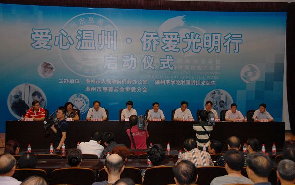 7月20日 下午,“愛心溫州·僑愛光明行”啟動儀式在溫州醫(yī)學院育英學術(shù)館二樓報告廳舉行。市委常委、市委統(tǒng)戰(zhàn)部長陳作榮,市慈善總會會長張林、溫州醫(yī)學院副院長呂帆、眼視光醫(yī)院執(zhí)行院長王勤美、副院長陳浩以及市僑辦、市慈善總會僑愛分會相關(guān)負責人,在溫華僑華人代表出席了啟動儀式。