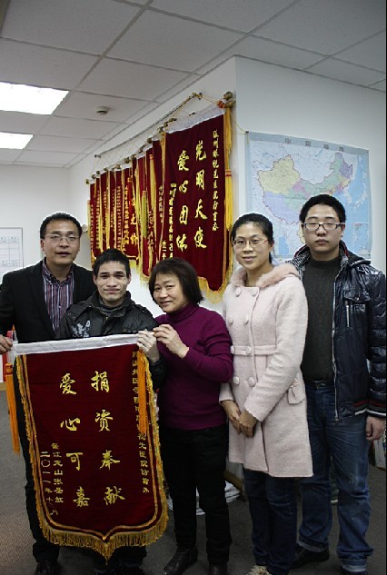 出院后,患者母親欣喜地為我們辦公室送來了錦旗,告訴我們效果非常好,從剛開始的只有眼前的視力,到現(xiàn)在有0.4,感謝病區(qū)的醫(yī)生以及醫(yī)護(hù)人員對(duì)他們的照顧,并激動(dòng)地說,以后有錢了,她一定也會(huì)捐錢,資助其他的貧困患者。我們聽了,心里非常激動(dòng),這正是我們所希望的結(jié)果,希望得到過幫助的人,心存感謝,將來也能在自己能力范圍內(nèi)幫助更多的人,那中國(guó)的慈善事業(yè)也會(huì)越來越好,社會(huì)也會(huì)越來越和諧。