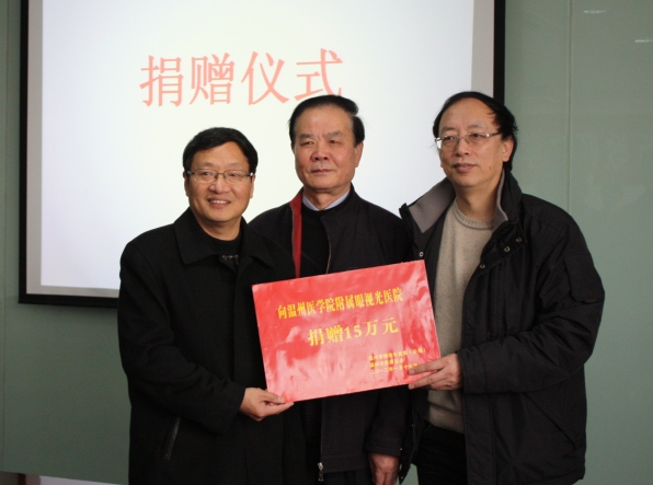 1月17日上午,溫州市煙草專賣局(公司)杜局長(zhǎng)一行,在市慈善總會(huì)張致光秘書長(zhǎng)的陪同下為我院捐贈(zèng)了15萬元用于貧困眼病救助項(xiàng)目。我院執(zhí)行院長(zhǎng)王勤美、書記汪軍洪、副院長(zhǎng)陳浩、防盲辦副主任涂昌森,接待了來賓,介紹了我院的公益醫(yī)療項(xiàng)目并其取得的成績(jī)。