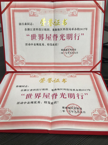 近日,青藏高原再次傳來喜訊,我院防盲治盲辦公室主任涂昌森和白內(nèi)障中心副主任徐栩獲得那曲地區(qū)科技局頒發(fā)的“世界屋脊光明行”優(yōu)秀表現(xiàn)表彰證書,以表彰他們在今年八月份作為浙江省科技代表團(tuán)重要成員,克服種種困難為海拔4500多米的那曲地區(qū)群眾送去光明的突出貢獻(xiàn)。