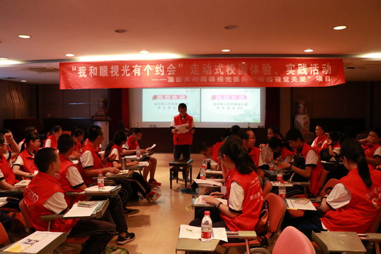 我院一直以來都將青少年近視防控作為一項(xiàng)重要工作,“校園視覺關(guān)愛”項(xiàng)目的開展就是為了保護(hù)與關(guān)愛少年兒童的視覺健康。其中,在醫(yī)院吳文燦副院長的指導(dǎo)下推出的校園體驗(yàn)實(shí)踐活動(dòng),以醫(yī)院為愛心基地,牽手溫州市中學(xué)生,開展以“班級(jí)”為單位的活動(dòng),從傳統(tǒng)的入校篩查,升級(jí)到更豐富、更全面的走動(dòng)式體驗(yàn)實(shí)踐項(xiàng)目,全方位助力青少年視覺健康。