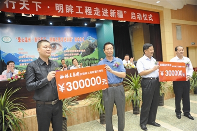 在啟動儀式上,蜘蛛王集團繼在貴州等地捐款160萬元,資助800多名貧困白內(nèi)障患者后,再捐款30萬元,用于資助新疆150名貧困白內(nèi)障患者。該集團董事長許承建稱,明眸工程是實實在在的民生工程,他們將一如既往地支持,為和諧社會做出應(yīng)有的貢獻。