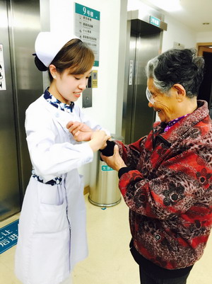 “您昨晚睡得好嗎?有沒有不舒服的地方?有什么需要我們幫助的?”工作中,戴婷婷總是習(xí)慣用微笑問候每一個病人,緩和病人的緊張情緒。通過問候,病人會把自己的需求及時反饋過來;通過問候,往往還能及時發(fā)現(xiàn)患者的一些異常表現(xiàn)。記得一次在巡房過程中,戴婷婷發(fā)現(xiàn)27床的阿公一直不停地按摩自己的小腿,她趕緊上前去詢問阿公是否需要幫忙。阿公告訴她,自己抽筋的老毛病犯了。看著一臉苦楚的阿公,戴婷婷趕緊買來了紅花油,并為阿公按摩小腿,經(jīng)過按摩,阿公的抽筋緩解了,激動地說:“小姑娘,我好多了,真的太謝謝你了,你比我親生女兒還親啊!”