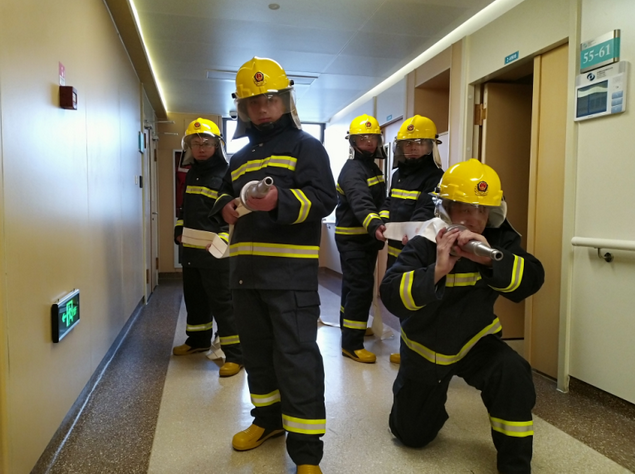 由我院安保人員組成的消防應(yīng)急小分隊(duì)身著戰(zhàn)斗服趕到現(xiàn)場處置。