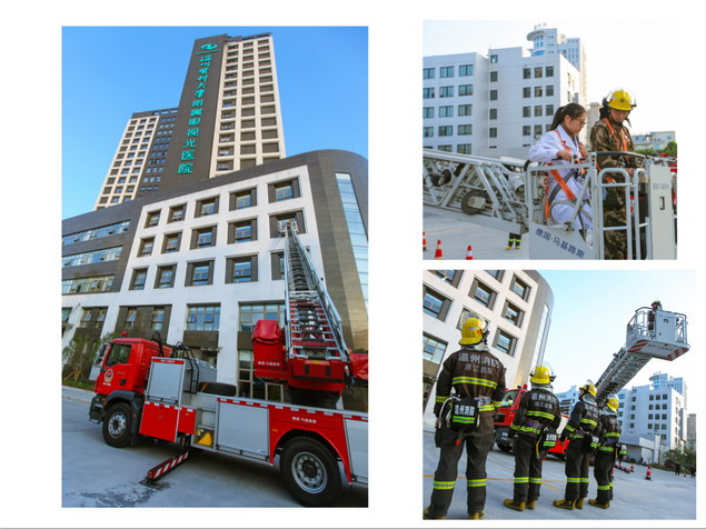 一位醫(yī)生為了疏散完最后一位病人后,因?yàn)?/span>“火勢”太大被困,無法從通道撤離。消防隊(duì)員得知后,立即啟動云梯車,將醫(yī)生從病房窗口安全救下,成功逃生。隨著消防隊(duì)員水槍出水,火被撲滅,本次消防演練圓滿結(jié)束。