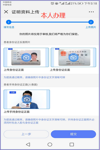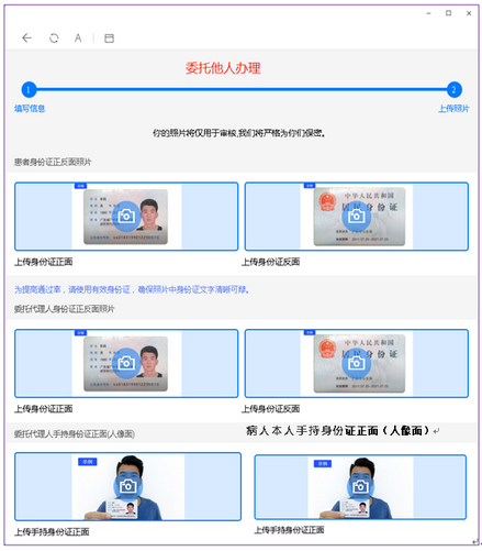 填寫信息并上傳手持身份證照片,確保無誤后提交申請。患者姓名、身份證號、住院號、復(fù)印用途、復(fù)印份數(shù)、郵寄方式等信息都要準(zhǔn)確填寫。