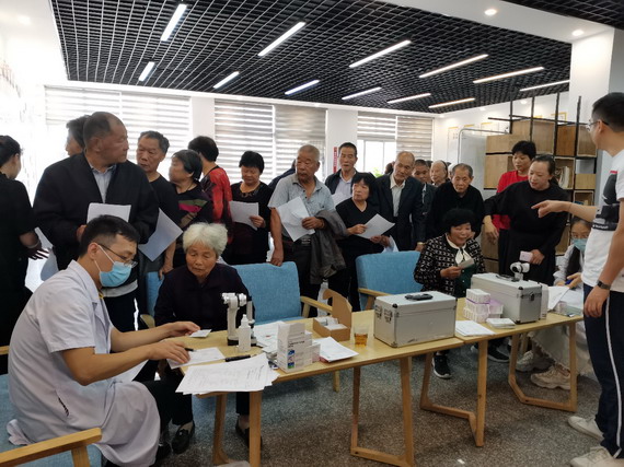 10月1日,國慶、中秋喜相逢,永嘉縣橋下鎮(zhèn)八里村迎來了他們第三屆“敬老百叟宴”活動,村委會為全村70歲以上的老年人舉辦盛大的宴席和敬老活動。作為活動中濃墨重彩的一筆,我院眼科公益醫(yī)療團(tuán)隊(duì)聯(lián)合八里村村委開展的 “百名博士下基層”眼健康服務(wù)活動,為200余名老人提供了免費(fèi)的眼科義診服務(wù)。