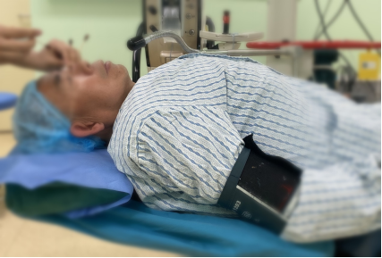 手術(shù)當(dāng)天,當(dāng)?shù)弥颊?/span>因擔(dān)心自己無(wú)法躺平會(huì)影響手術(shù)進(jìn)行而充滿了焦慮,巡回護(hù)士特地去術(shù)前等候區(qū)親自迎接患者,緩解其緊張的心情。同時(shí)了解其駝背程度,提早準(zhǔn)備好干凈的無(wú)紡布及布巾,快速制作成簡(jiǎn)易體位墊,將其頭枕部墊高50mm左右。再配合床位的調(diào)節(jié),最終完全契合患者的體態(tài),減輕其平躺時(shí)的負(fù)擔(dān),使其在手術(shù)時(shí)既能有一個(gè)舒適的體位以保證術(shù)中良好的配合,同時(shí)又滿足了眼科手術(shù)時(shí)眼球水平位置的需求。