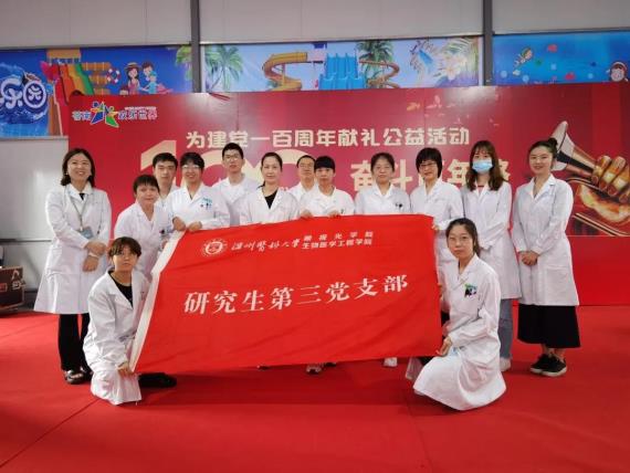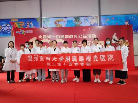 為慶祝建黨100周年,5月29日上午9點(diǎn),在蒼南縣歡樂世界,由民進(jìn)蒼南基層委、溫州醫(yī)科大學(xué)附屬眼視光醫(yī)院聯(lián)合主辦為兒童青少年送健康活動(dòng)。我院教工第一黨支部、第十五黨支部以及研究生第三黨支部的師生一起參與此次活動(dòng)。