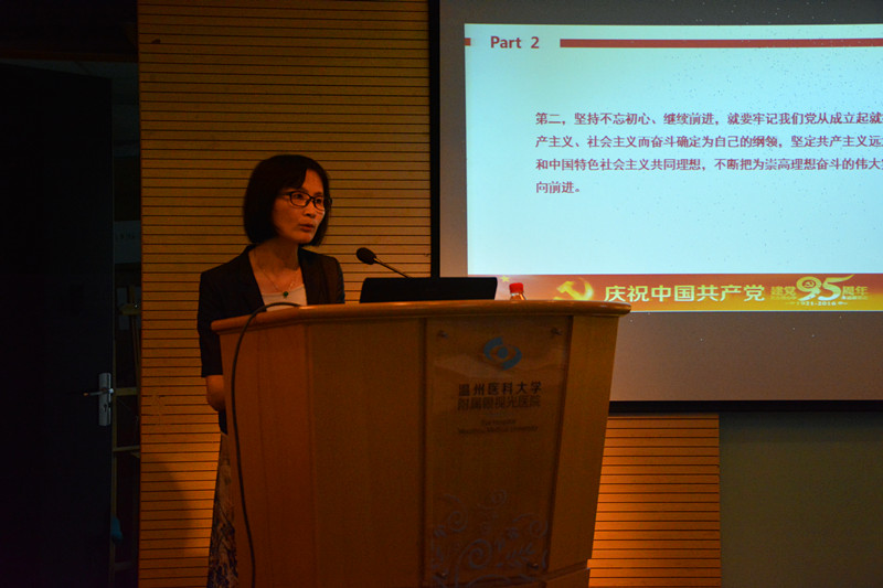 7月11日下午,眼視光學院、附屬眼視光醫(yī)院、生物醫(yī)學工程學院召開中層干部擴大會議,院黨委書記陳燕燕講黨課,傳達學習習近平總書記在慶祝中國共產(chǎn)黨成立95周年大會上的重要講話精神,院領導、中層干部、各黨支部書記參加會議。
