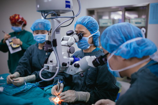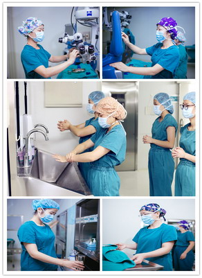 手術(shù)之前,護士會將各個手術(shù)儀器按需擺放位置,連接電源開機,進行相關(guān)標定及參數(shù)的選擇及確認,準備儀器配件。準備無菌包及手術(shù)器械,以及術(shù)中所需的貴重耗品和各種藥液。病人進入手術(shù)室,護士簡單核對后協(xié)助病人擺好手術(shù)體位,再與醫(yī)生、麻醉師做好三方核查;連接心電監(jiān)護儀,按需給氧及連接靜脈輸液并向病人強調(diào)術(shù)中配合注意事項,因為眼科手術(shù)多為老人,護士們會特別留心告知患者“手術(shù)中不好突然咳嗽,要動之前必須先告訴醫(yī)生”之類的話語。