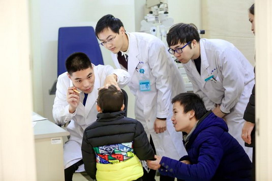 兒童斜視與弱視是眼科臨床上的一種常見疾病,據(jù)文獻報道,斜視發(fā)病率約為1%,弱視發(fā)病率為3%,按此統(tǒng)計國內(nèi)約有1千多萬名兒童患有此兩種眼病。斜視弱視不但會嚴重孩子們視功能發(fā)育與身心健康,而且治療窗口期非常窄,一旦錯失視覺發(fā)育可塑期,就遺憾終生。再者,社會與患兒家長對此類眼病了解甚少,甚至采取不當方法進行所謂的“治療”,貽誤病情。侯立杰醫(yī)生記得,有一位3歲的杭州蕭山小男孩,自幼歪著脖子,學會走路后也是歪歪扭扭,經(jīng)常摔跤,大人以為是脖子出了毛病,多次到上海某醫(yī)院做斜頸矯正手術(shù),結(jié)果總是一個月不到脖子又歪了。一次偶遇白內(nèi)障手術(shù)出院的親戚,說自己在浙江省眼科醫(yī)院住院的時候有看到類似小朋友,也許是眼睛的毛病,遂到杭州院區(qū)找到了侯立杰醫(yī)生。經(jīng)診斷,患兒原來是“先天性上斜肌麻痹”,早期通過實施斜視矯正手術(shù)是可復原的。手術(shù)進展很順利,術(shù)后第二天,孩子的脖子馬上正位了,家長連連稱贊。