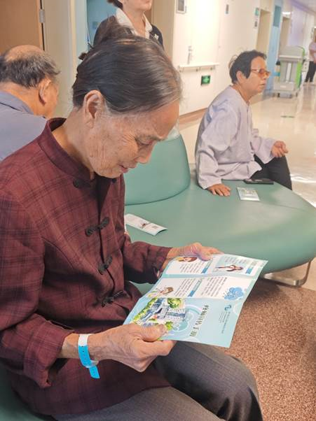圖 3陳阿婆在仔細閱讀疼痛宣傳手冊