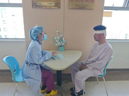 圖 5陳秀楨護士在為眼球摘除術后患者講解術后疼痛相關護理知識