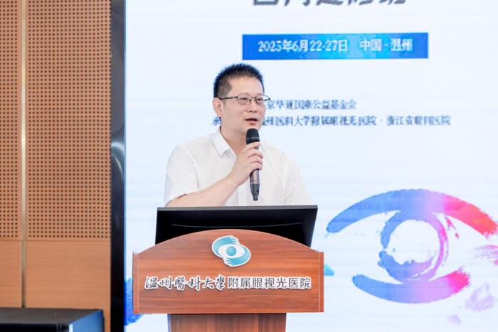 北京華通國康公益基金會副秘書長李金兵在致辭中表達了對進修班的美好祝愿以及對提升基層眼科醫(yī)療水平的重視與期待。他強調,雙方攜手開展“溫眼在縣”項目,旨在通過系統(tǒng)化培訓,推動基層眼科醫(yī)師的規(guī)范化、同質化培養(yǎng),提升患者診療質量,減輕社會醫(yī)療負擔。