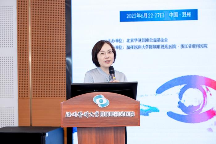 陳綺圍繞近視防控主題展開專題講座。她結合實際案例與前沿研究成果,詳細闡述了近視防控的關鍵策略、先進技術和有效方法。她從預防、干預到控制的全過程,為學員們武裝了“實戰(zhàn)”知識。