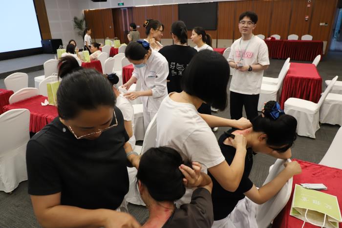 時(shí)值七月,暑熱夾濕。為弘揚(yáng)傳統(tǒng)中醫(yī)文化,關(guān)心關(guān)愛(ài)員工身心健康,7月3日中午,由溫醫(yī)大附屬眼視光醫(yī)院工會(huì)主辦,第六工會(huì)小組承辦的中醫(yī)刮痧體驗(yàn)活動(dòng)在五樓報(bào)告廳順利舉辦,真正將中醫(yī)養(yǎng)生理念和貼心關(guān)懷送到員工身邊。