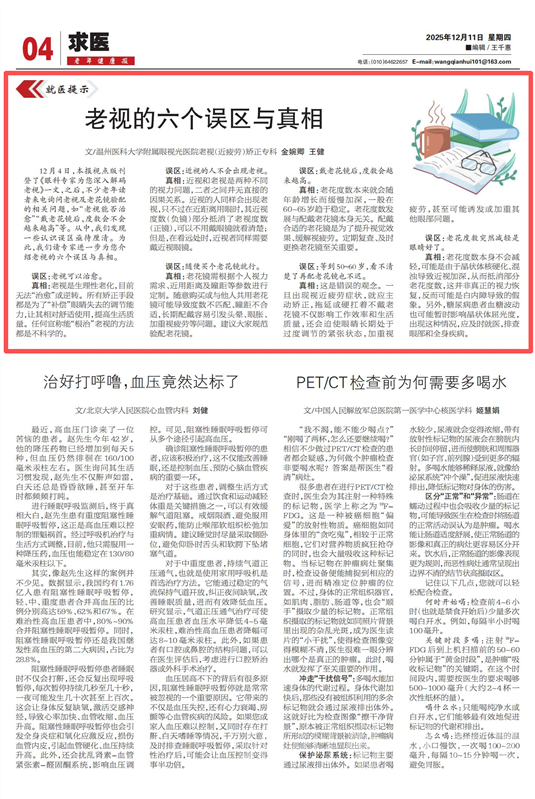 12 月 4 日,本報視點版刊登了《眼科專家為您深入解碼老視》一文,之后,不少老年讀者來電詢問老視及老花鏡驗配的相關(guān)問題,如“ 老視能否治愈 ”“戴老花鏡后,度數(shù)會不會越來越高”等。從中,我們發(fā)現(xiàn)一些認識誤區(qū)亟待厘清。為此,我們請專家進一步為您介紹老視的六人誤區(qū)與真相。
