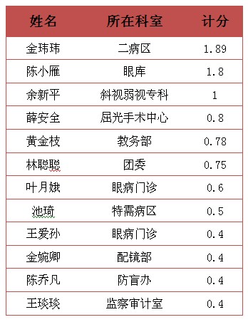 注:根據(jù)溫州醫(yī)科大學(xué)附屬眼視光醫(yī)院《新聞報(bào)道考核細(xì)則》和《眼視光學(xué)院、醫(yī)院新聞獎(jiǎng)勵(lì)辦法》(溫醫(yī)眼視光辦[2012]1號(hào))進(jìn)行計(jì)分。