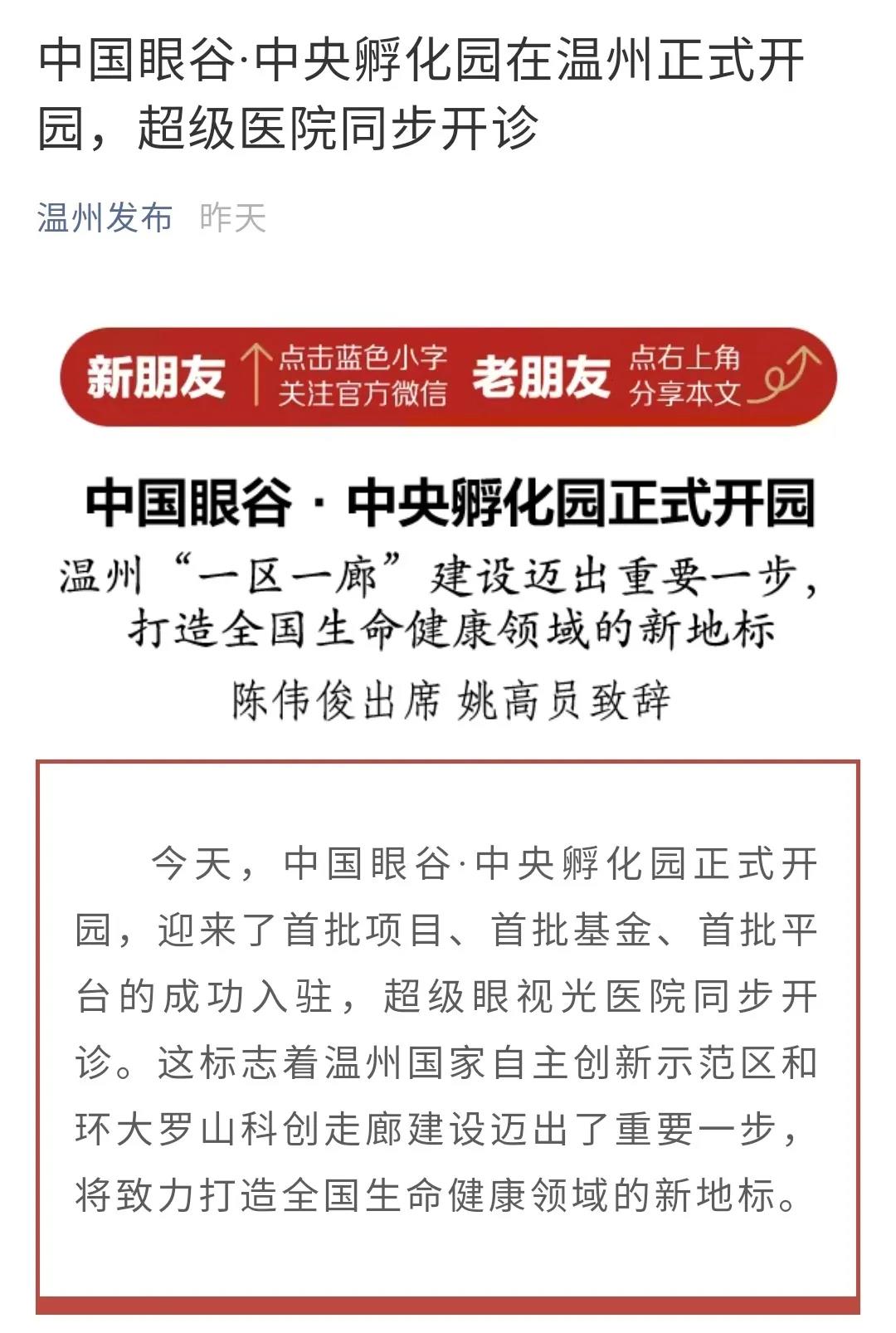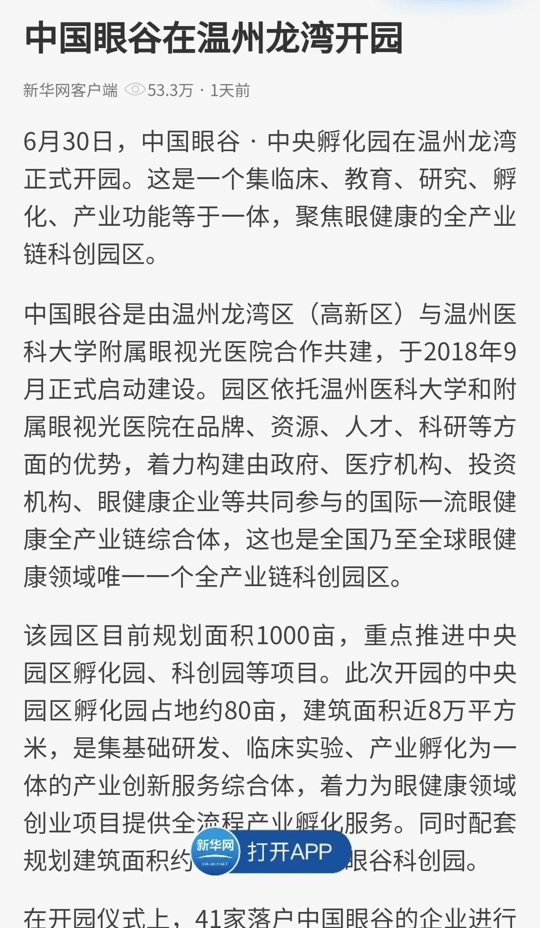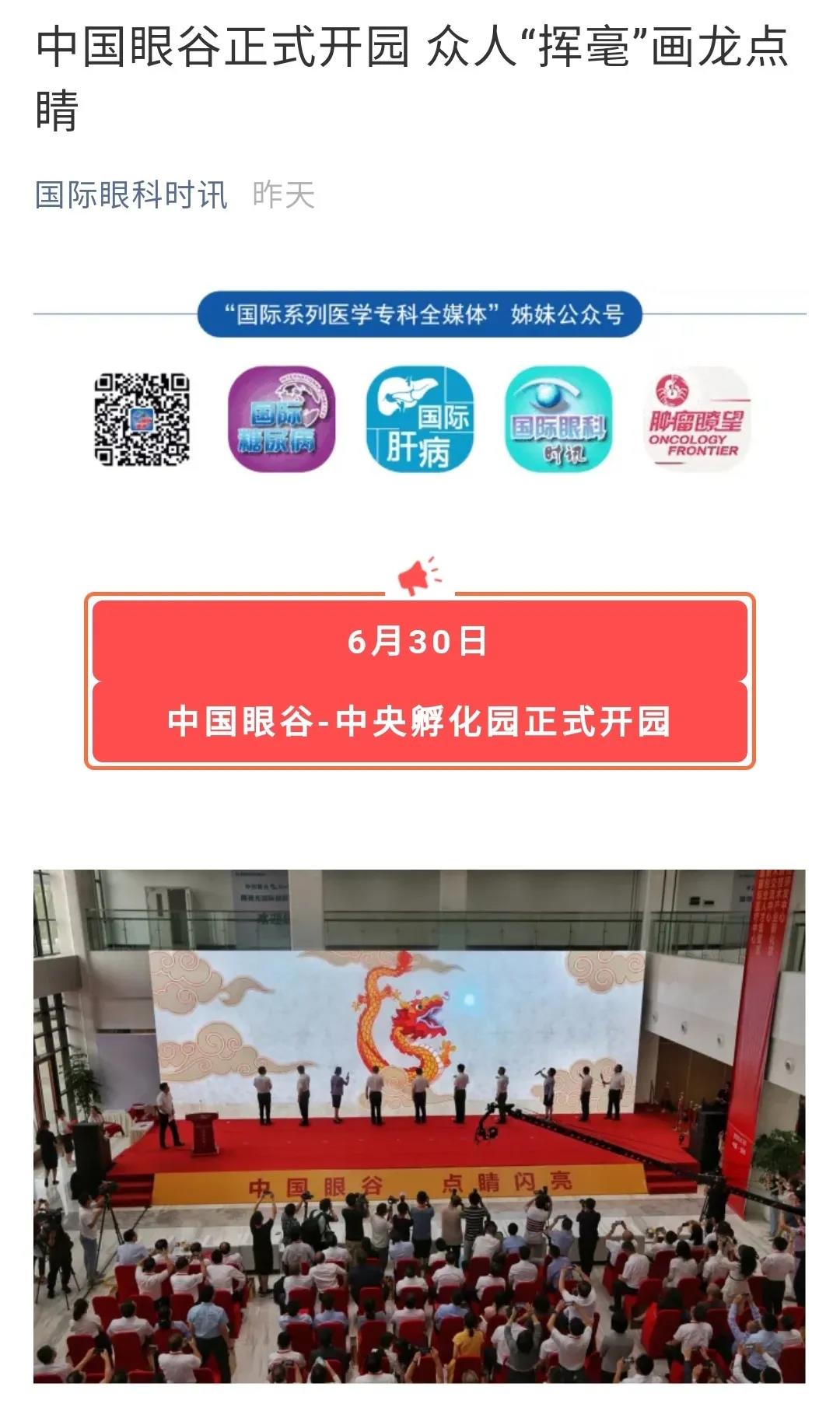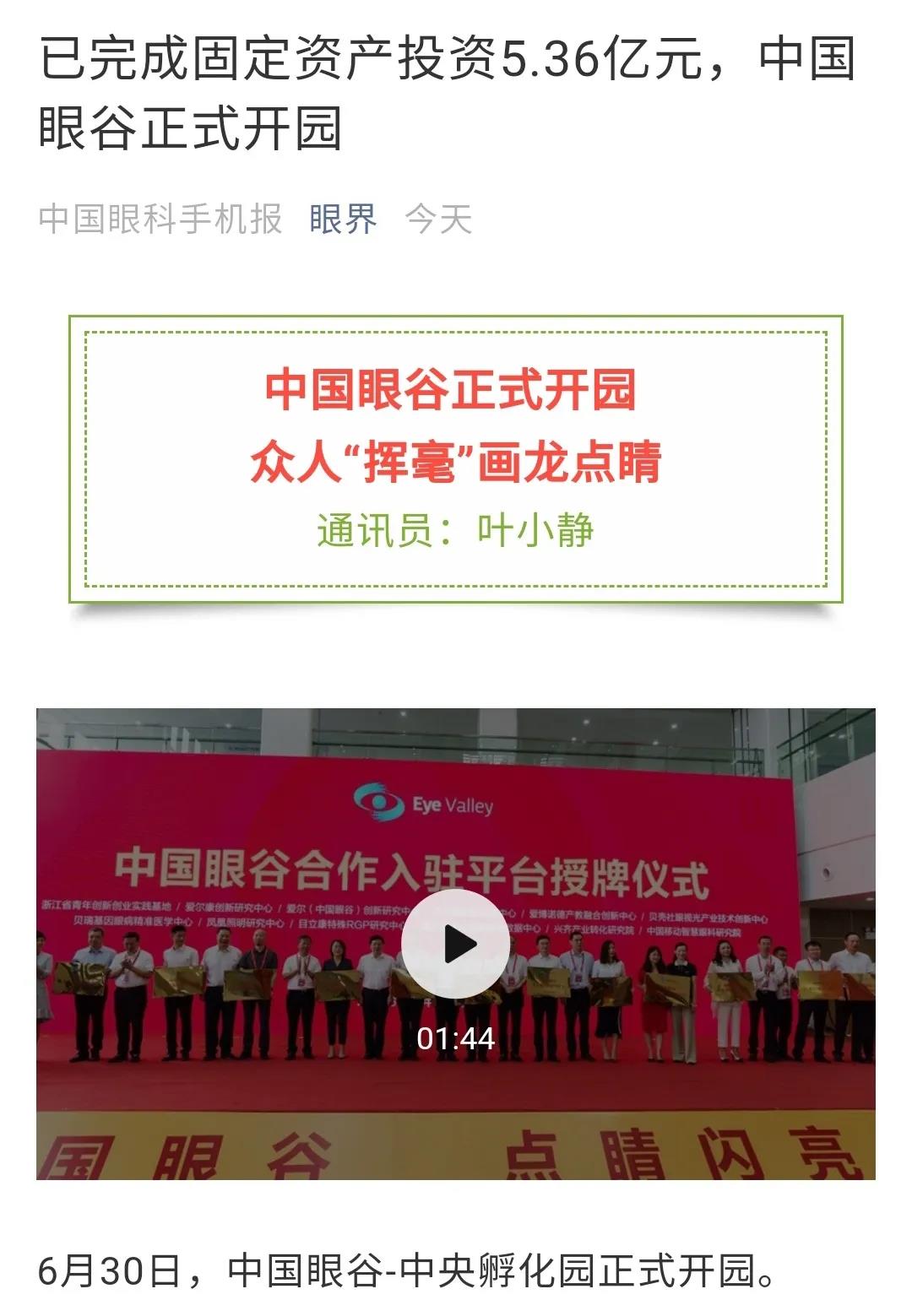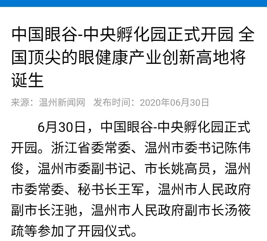 ? ? ? 2020年6月30日,中國眼谷·中央孵化園正式開園,同時迎來了首批項目、首個基金、首批平臺的成功入駐以及超級眼視光醫(yī)院的正式開診。