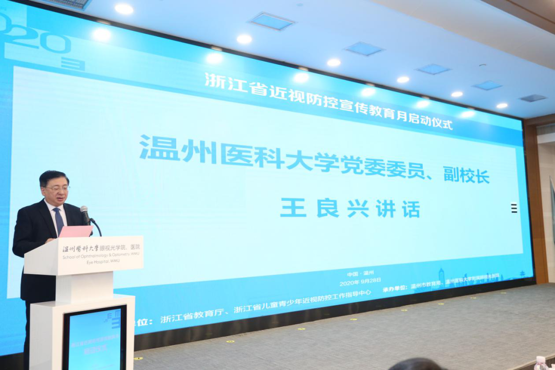 ? ? ? ?溫州醫(yī)科大學黨委委員、副校長王良興從近視防控的國家戰(zhàn)略出發(fā),提出溫州醫(yī)科大學作為高等醫(yī)學院校,在近視防控中也是責無旁貸,將繼續(xù)做好浙江省兒童青少年近視防控工作指導中心的各項工作,確保我省綜合防控兒童青少年近視工作做出成效,并祝福浙江省近視防控宣傳教育月活動取得圓滿成功。