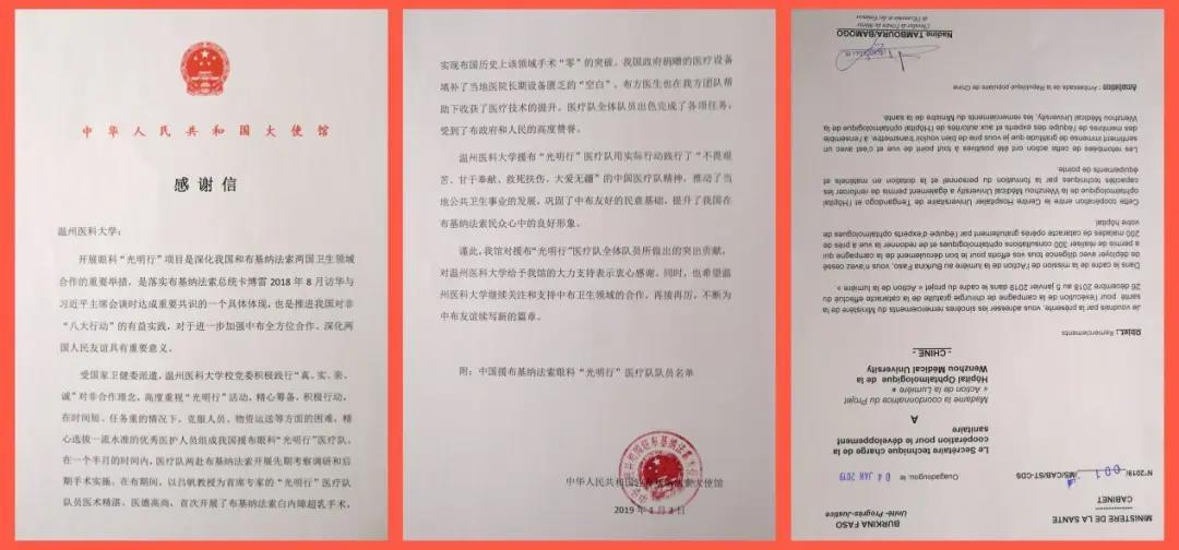 中國駐布大使館和布衛(wèi)生部發(fā)給溫醫(yī)大的感謝函