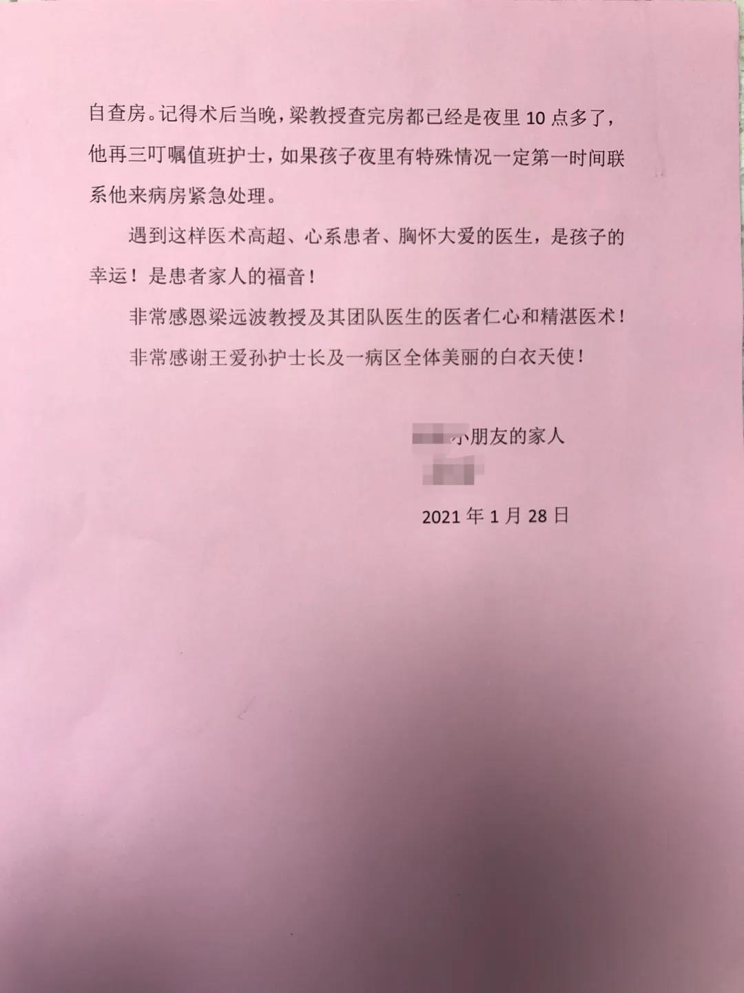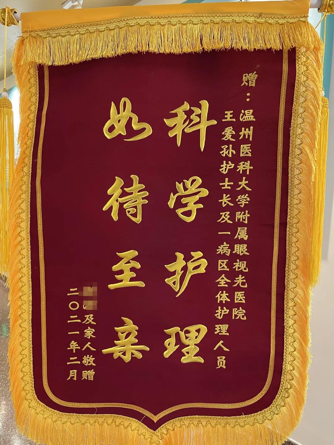 ? ? ? 另外,小樹父母還特別感謝眼視光醫(yī)院一病區(qū)的王愛孫護(hù)士長(zhǎng)和全體護(hù)士,因?yàn)楹⒆舆€患有其他疾病,護(hù)士長(zhǎng)精心協(xié)調(diào)、妥善安排,護(hù)士們工作認(rèn)真負(fù)責(zé)、謹(jǐn)慎細(xì)致,為孩子提供個(gè)性化的照護(hù)。小樹父母感謝道:“一病區(qū)病房環(huán)境特別好,舒適溫馨,護(hù)士們對(duì)孩子像大姐姐一樣和藹可親,孩子也和護(hù)士們無話不談,我們從千里之外趕來,在這里感到宛如家人般的溫暖!”