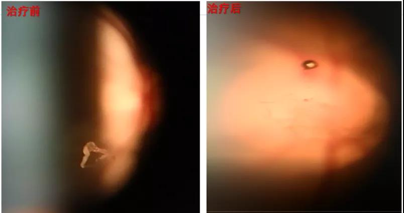胡志翔醫(yī)師使用飛蚊癥激光治療前后眼底照片的對(duì)比,在無(wú)創(chuàng)的情況下,患者的視覺(jué)質(zhì)量得到了明顯改善。