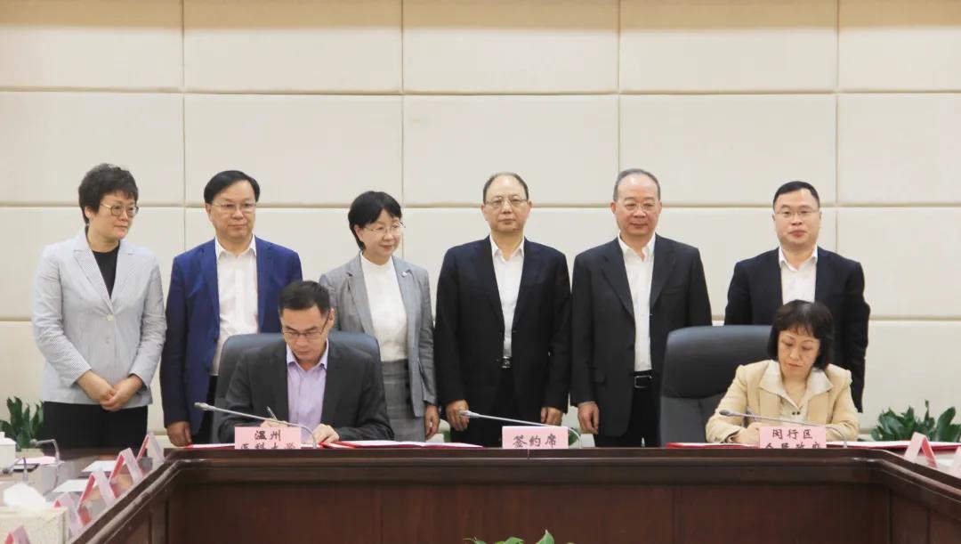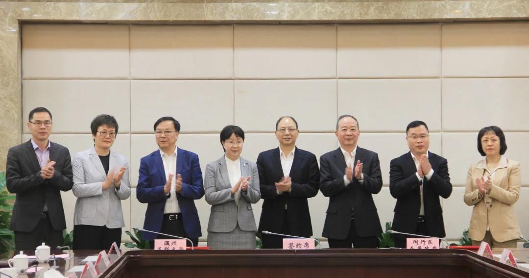 ? ? ? 2021年4月30日,溫州醫(yī)科大學(xué)與上海市閔行區(qū)人民政府在上海簽訂戰(zhàn)略合作框架協(xié)議,在此合作框架下,溫州醫(yī)科大學(xué)附屬眼視光醫(yī)院與上海市閔行區(qū)衛(wèi)生健康委、閔行區(qū)華漕鎮(zhèn)人民政府就建設(shè)上海新虹橋國際眼視光眼科醫(yī)學(xué)中心項目同時簽訂協(xié)議,擬在上海閔行共同打造眼視光學(xué)科醫(yī)教研和高端人才、產(chǎn)業(yè)化、國際化的高水平建設(shè)平臺。上海閔行區(qū)委書記倪耀明、區(qū)長陳宇劍、副區(qū)長劉艷,溫州醫(yī)科大學(xué)黨委書記呂一軍、溫州醫(yī)科大學(xué)眼視光醫(yī)學(xué)部主任瞿佳、國家眼部疾病臨床醫(yī)學(xué)研究中心主任呂帆、溫州醫(yī)科大學(xué)副校長金勝威,溫州市人民政府駐上海聯(lián)絡(luò)處主任鄭海潔以及校相關(guān)處室負責(zé)人、眼視光醫(yī)院領(lǐng)導(dǎo),上海閔行區(qū)相關(guān)職能部門和華漕鎮(zhèn)的主要負責(zé)同志出席。儀式由閔行區(qū)長陳宇劍主持。