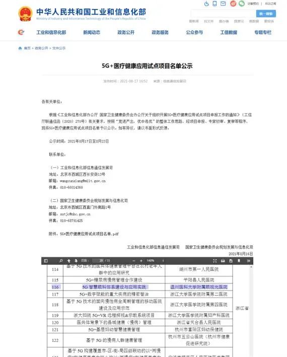 ? ? ? ?近日,工信部、國(guó)家衛(wèi)生健康委下發(fā)《5G+醫(yī)療健康應(yīng)用試點(diǎn)項(xiàng)目名單公示》,溫醫(yī)大附屬眼視光醫(yī)院“5G智慧眼科體系建設(shè)與應(yīng)用實(shí)踐”成功入選2021年5G+醫(yī)療健康應(yīng)用試點(diǎn)項(xiàng)目。? ?