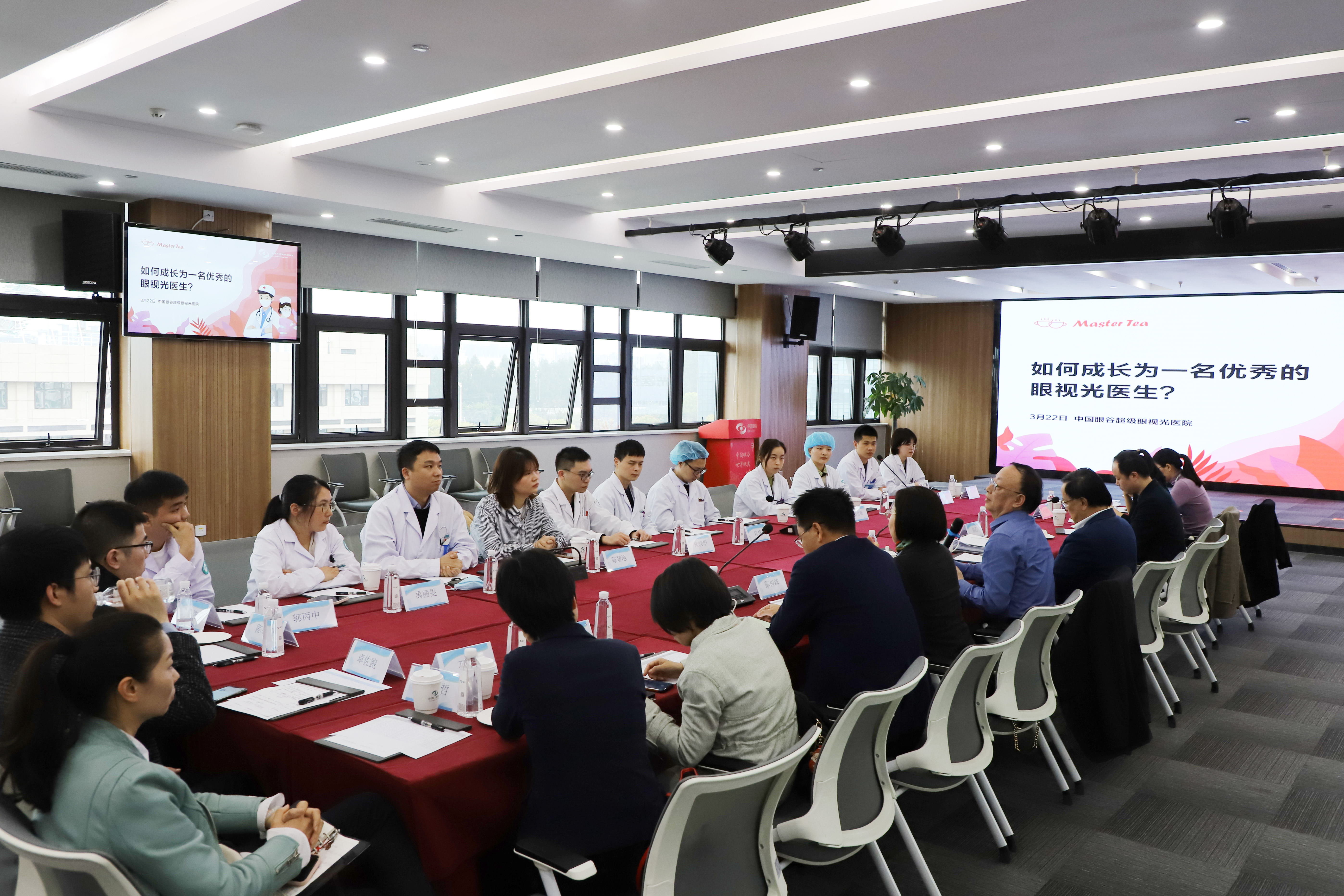 ? ? ? 3月22日,溫州醫(yī)科大學(xué)眼視光醫(yī)院集團(tuán)系列Master's Tea活動(dòng)在中國(guó)眼谷超級(jí)眼視光醫(yī)院舉行,本次主題是“如何成長(zhǎng)為一名優(yōu)秀的眼視光醫(yī)生?”邀請(qǐng)了導(dǎo)師瞿佳教授、王勤美教授、陳肖沫教授、陳浩教授等專家與來(lái)自集團(tuán)各分院/門(mén)診部的年輕醫(yī)生們共進(jìn)午餐,共話前程。