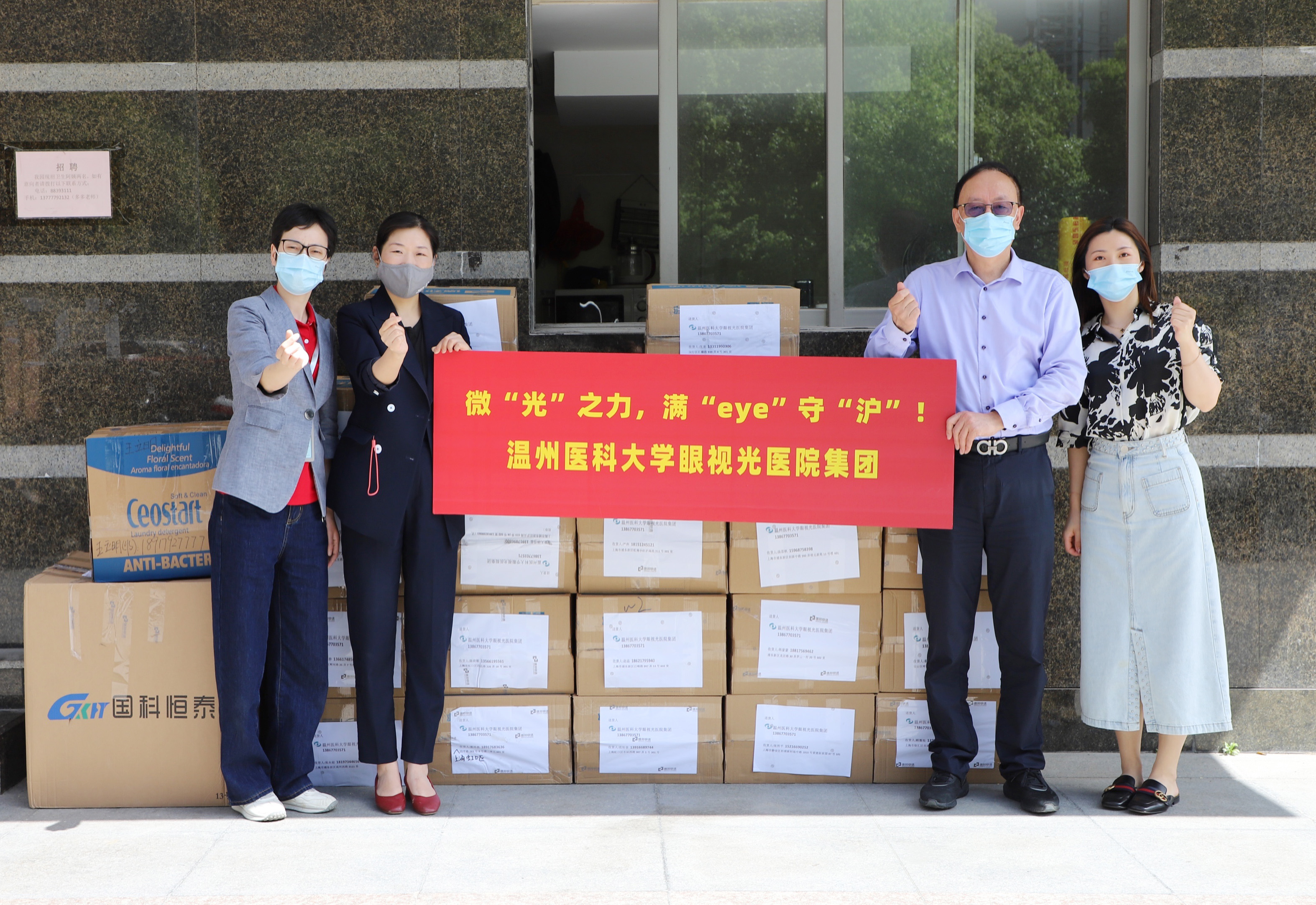 ? ? ? 4月14日上午,這輛裝著溫醫(yī)大眼視光醫(yī)院集團全體同事“愛與關(guān)懷”的車輛已發(fā)赴上海。