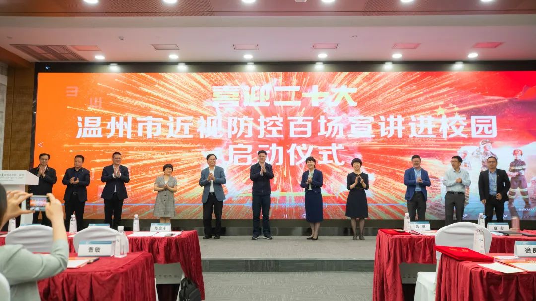 ? ? ? 在第27個全國“愛眼日”來臨之際,5月18日下午,“喜迎二十大,百場近視防控宣講進校園”啟動儀式在溫醫(yī)大附屬眼視光醫(yī)院舉行。由溫醫(yī)大附屬眼視光醫(yī)院60多名師生成立的志愿宣講隊,在接下來的一個月內(nèi),將走進溫州市百所中小學(xué)校,舉行百場近視防控宣講,普及眼健康科學(xué)知識,營造人人愛眼護眼、全民防控近視的濃厚氛圍。