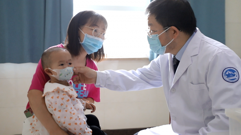 ? ? ? 據(jù)悉,2020年,該女?huà)氤錾谛陆⒖颂K,在出生10多天的時(shí)候被發(fā)現(xiàn)左眼長(zhǎng)了一個(gè)巨大腫瘤,她的父親于先生抱著女兒輾轉(zhuǎn)當(dāng)?shù)囟嗉裔t(yī)院均束手無(wú)策。考慮新生兒得這么大的眼部腫瘤確實(shí)罕見(jiàn),手術(shù)難度特別大,當(dāng)時(shí)正在阿克蘇地區(qū)第一人民醫(yī)院柔性援疆的溫醫(yī)大附屬眼視光醫(yī)院施節(jié)亮醫(yī)師建議于先生到溫醫(yī)大附屬眼視光醫(yī)院找吳文燦教授診治,他是國(guó)內(nèi)眼眶眼腫瘤微創(chuàng)外科領(lǐng)域的資深專(zhuān)家。