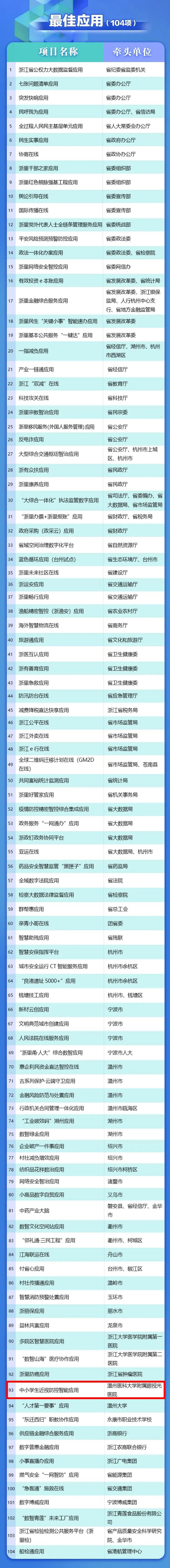 ? ? ? 此次公布的2022年數(shù)字化改革成果中,“最佳應(yīng)用”共104個(gè)項(xiàng)目,溫醫(yī)大附屬眼視光醫(yī)院的“中小學(xué)近視防控智能應(yīng)用”名列其中(下圖第93項(xiàng))。