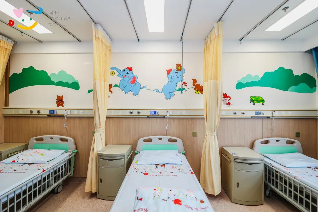 ? ? ? ?在病房里,處處能夠看到體現(xiàn)兒童友好的細(xì)節(jié):病房內(nèi)使用兒童專用防跌防撞病床;墻上設(shè)計可愛生動的手繪卡通動物形象;病房外設(shè)置兒童閱讀區(qū)和活動區(qū),患兒可在醫(yī)護(hù)和家屬的陪伴下閱讀和玩樂,緩解住院期間的緊張情緒。