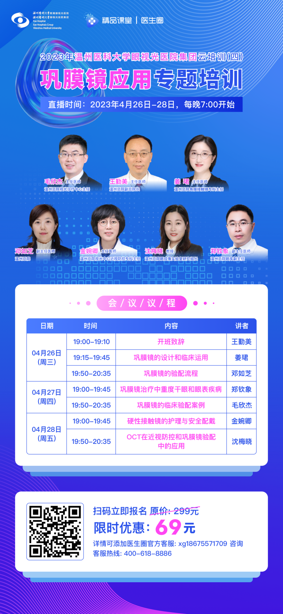 ? ? ? 為了規(guī)范鞏膜鏡驗(yàn)配與治療,提高對(duì)鞏膜鏡的了解與應(yīng)用,溫州醫(yī)科大學(xué)眼視光醫(yī)院集團(tuán)首席醫(yī)療官王勤美教授,攜手資深講師團(tuán),為大家?guī)?lái)3天6課時(shí)的“鞏膜鏡應(yīng)用”專題系列培訓(xùn)課程。授課內(nèi)容豐富,實(shí)用性強(qiáng),探討和解決臨床的實(shí)際問(wèn)題。