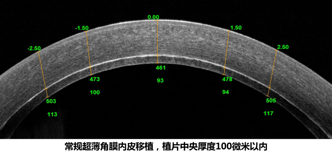 ? ? ? 全球各角膜移植中心都盡力將DSAEK角膜內(nèi)皮植片中央厚度控制在100微米以內(nèi),這種超薄的植片與常規(guī)植片(中央厚度超過100微米)相比,擁有更好的視覺質(zhì)量。而全球極少數(shù)幾家醫(yī)院在嘗試制備厚度50微米內(nèi)超超薄角膜植片,其術(shù)后視力和DMEK無明顯差異。