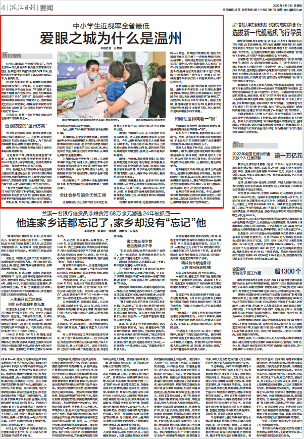 ? ? ? 兩個6,形似一雙彎彎笑眼。6月6日是第28個全國“愛眼日”,說起眼健康話題,在浙江乃至全國,溫州是繞不開的關(guān)鍵詞之一。