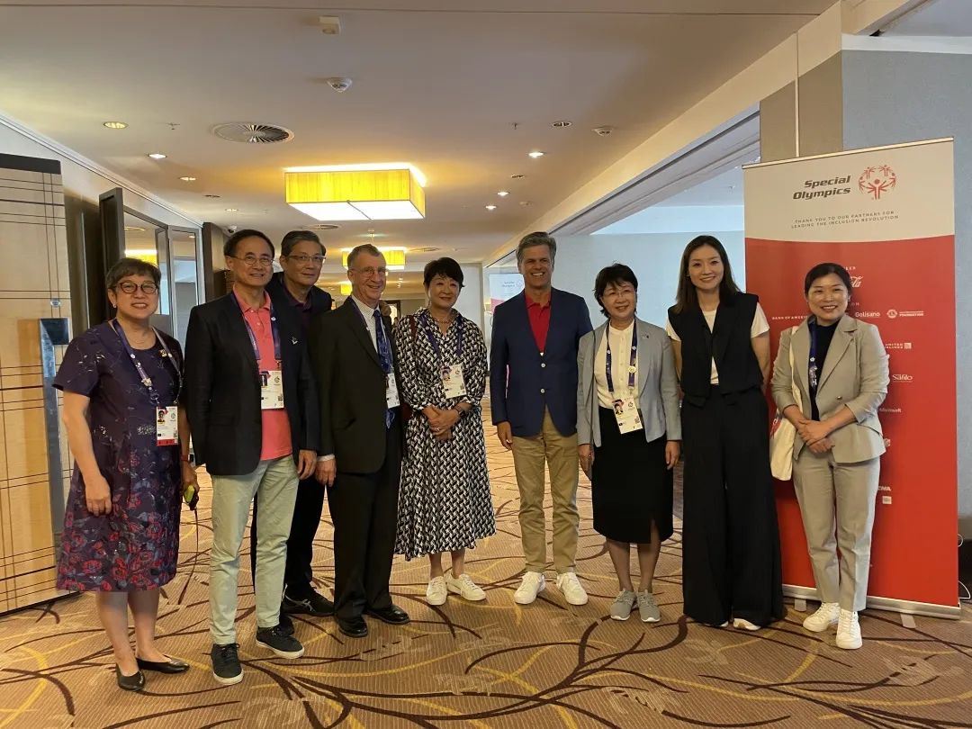 2023年世界特奧會上,呂帆教授與Tim主席(右四)、奧運冠軍李娜(右二),