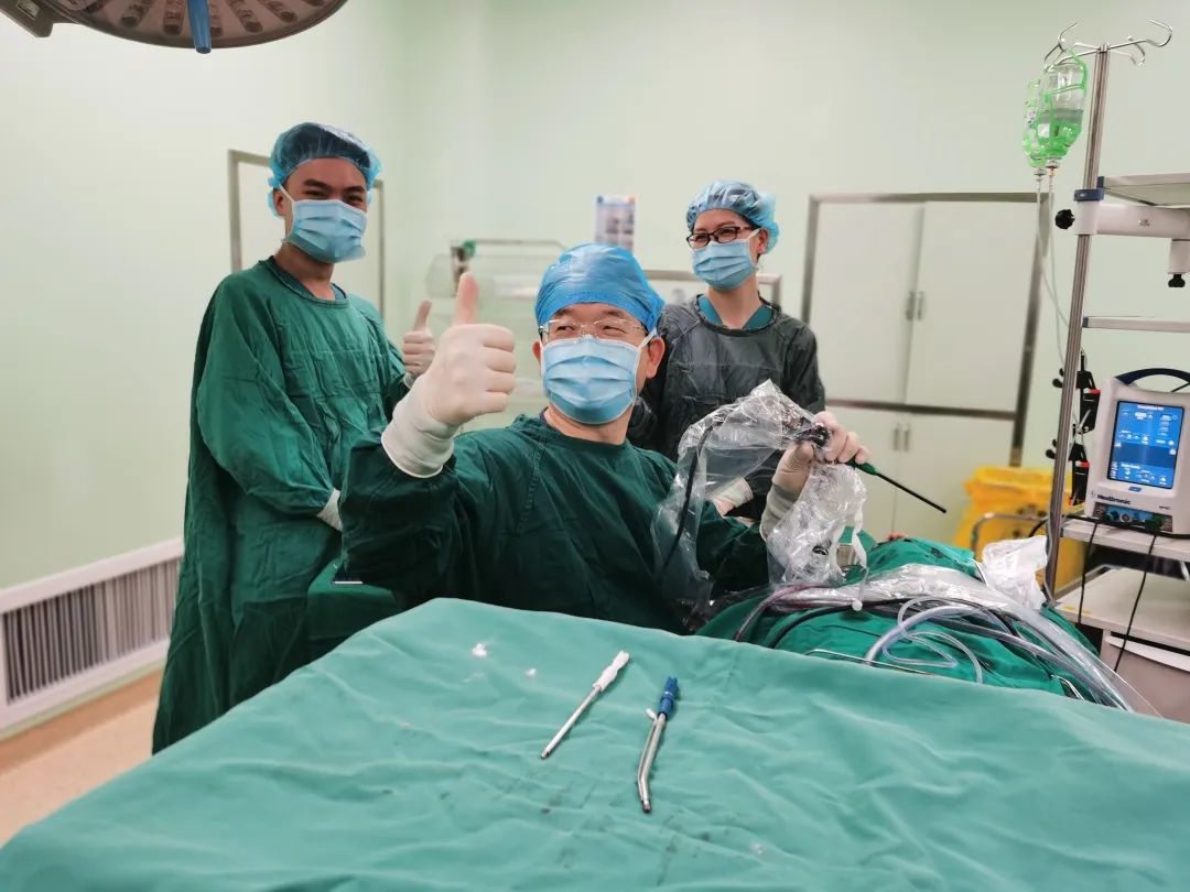 ? ? ? 手術(shù)中,吳文燦首先采用新型磁導(dǎo)航技術(shù)對腫瘤精準(zhǔn)定位與實時追蹤,然后借助內(nèi)窺鏡很好的照明與放大倍率,采取內(nèi)窺鏡微創(chuàng)技術(shù)將腫瘤與周圍組織之間的粘連帶極其小心地分離。