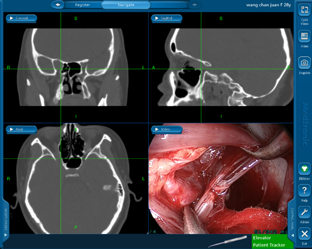 ? ? ? 成功的同時,吳文燦并沒有停止探索。當(dāng)時他了解到腦外科、耳鼻喉科手術(shù)正在使用一種導(dǎo)航技術(shù),可以解決在內(nèi)窺鏡操作下因為較難分辨的器械尖端的具體位置導(dǎo)致出現(xiàn)海綿竇破裂出血、視神經(jīng)損傷等嚴(yán)重并發(fā)癥的情況。